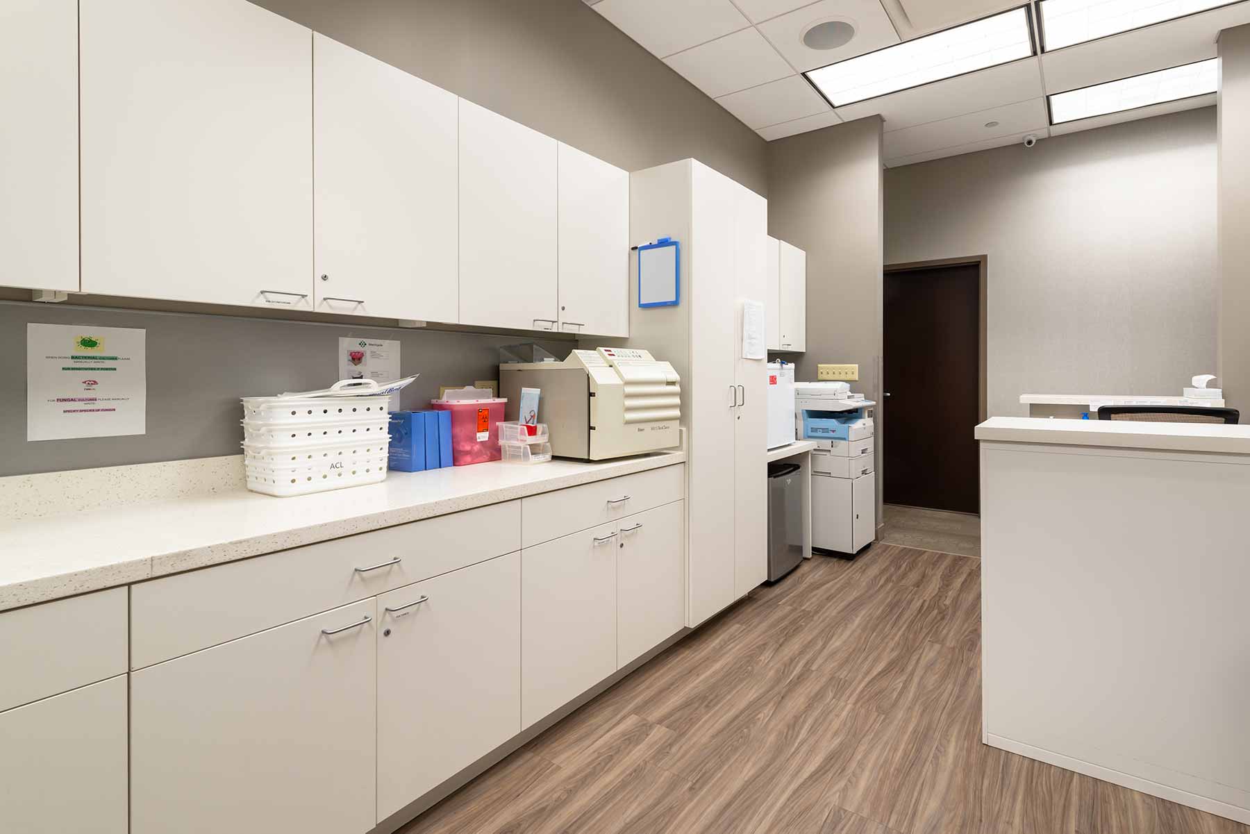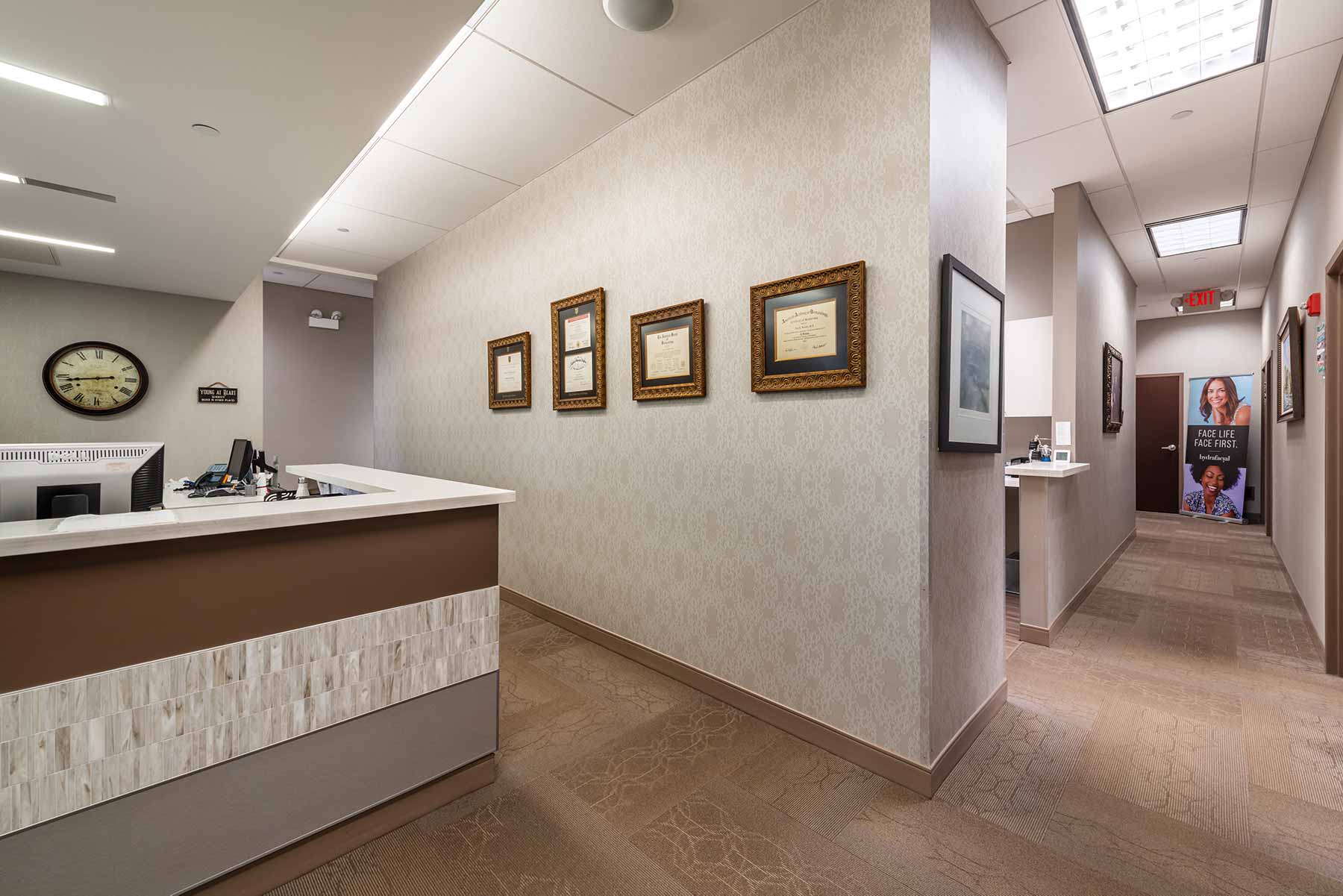 This growing dermatology practice was in dire need of an expansion and refresh. After 8 years of practice, the flow wasn’t working for the practitioners anymore and they needed more space everywhere they turned. The entire check-in and check-out process was redesigned as well as the central nurse’s station. Exam rooms were added and offices were redesigned to account for the growing staff. With new procedures being offered, multiple procedure rooms were added as well as product and supply storage. The staff lounge was increased and relocated to receive more privacy and separation from patient traffic and a call center was added for administration staff.