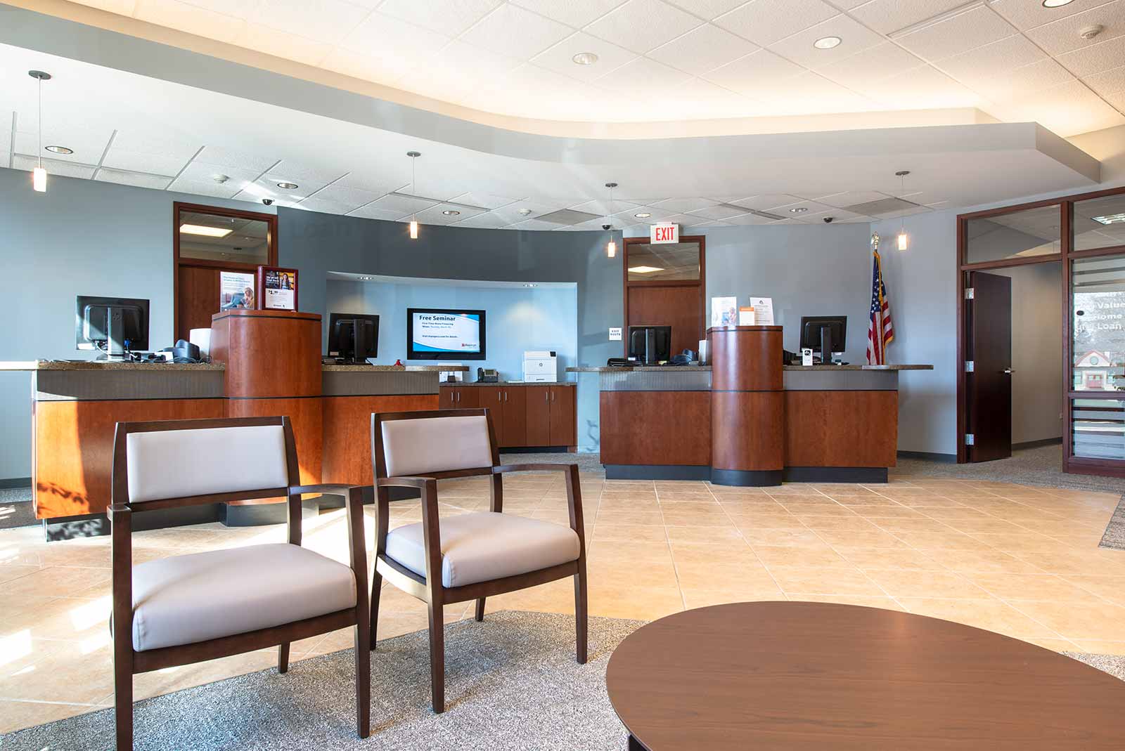 After going through a re-branding program, DuPage Credit Union needed to update their banking lobby in their Wheaton facility to reflect their new image. Interwork redesigned their lobby, not only to incorporate their new color scheme, but, to streamline their traffic flow and better position them for the future trends in the industry.
