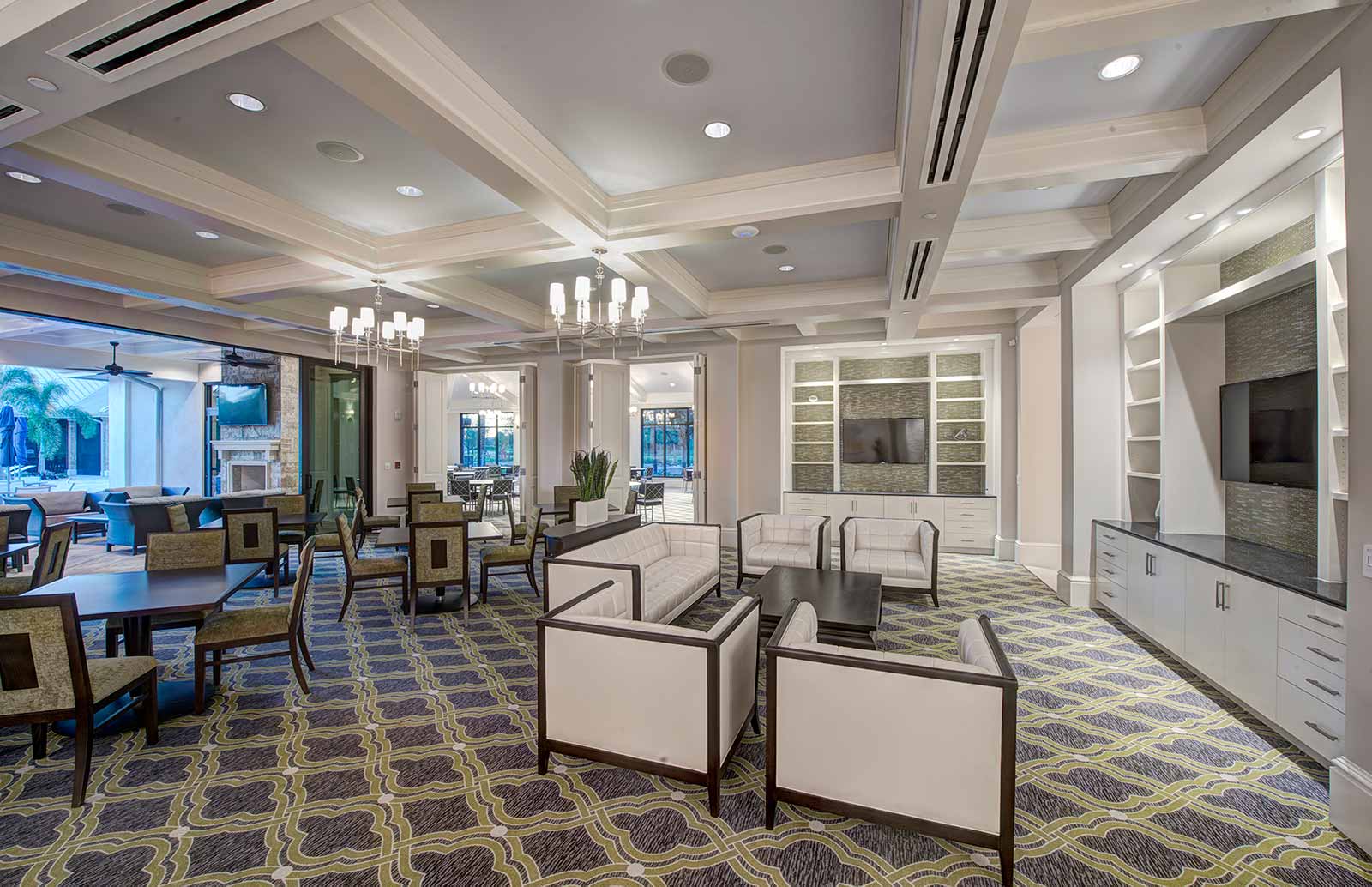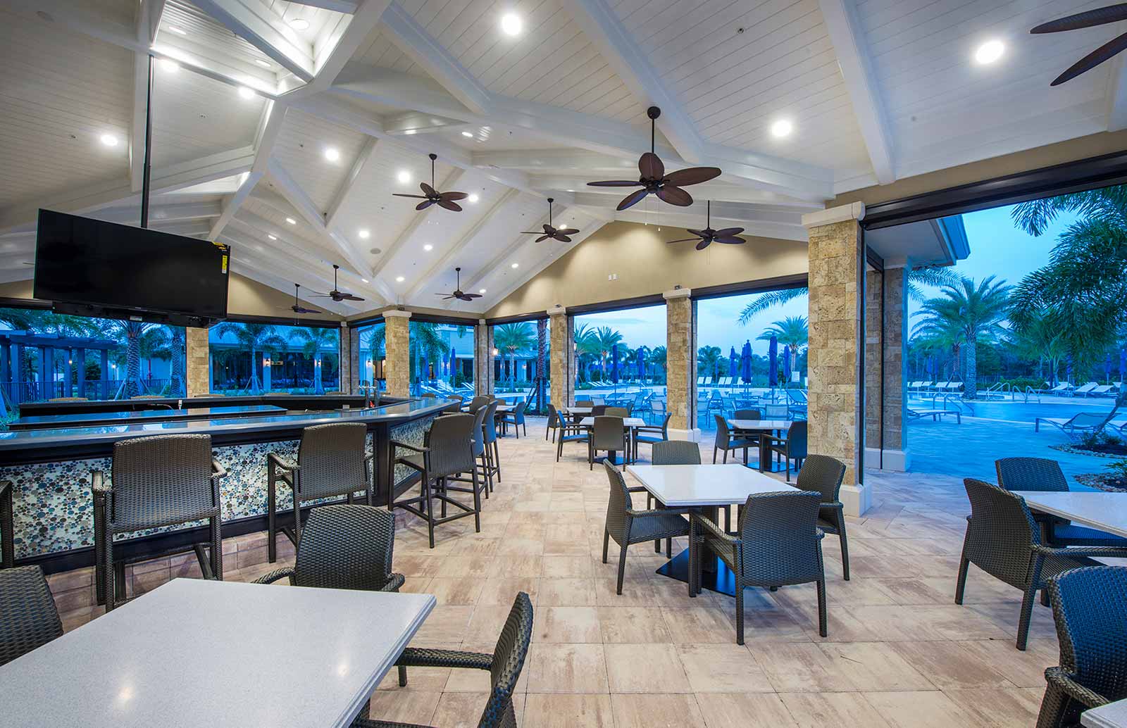 This community offers an upscale and stunning active adult amenity building in beautiful Naples. In addition to the clubhouse there is a pool side outdoor restaurant and bar.